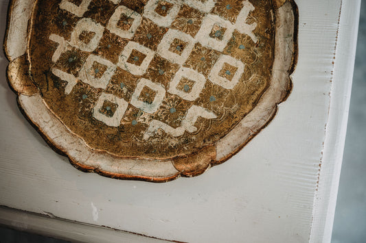 Altes Tablett in gold/weiß