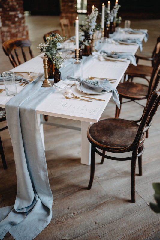 Leinentischläufer hellblau